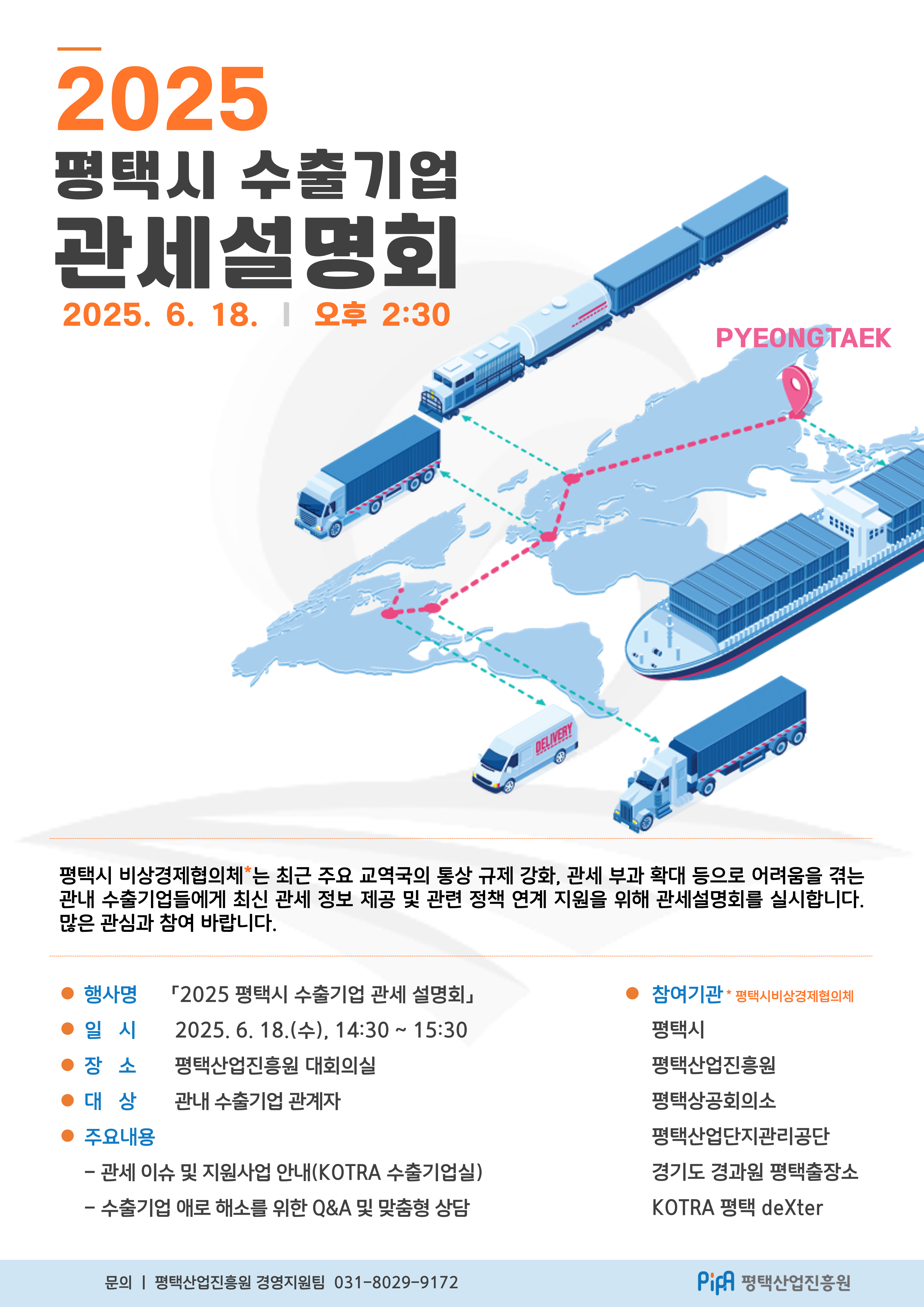 - 행사명 : 「2025 평택시 수출기업 관세 설명회」